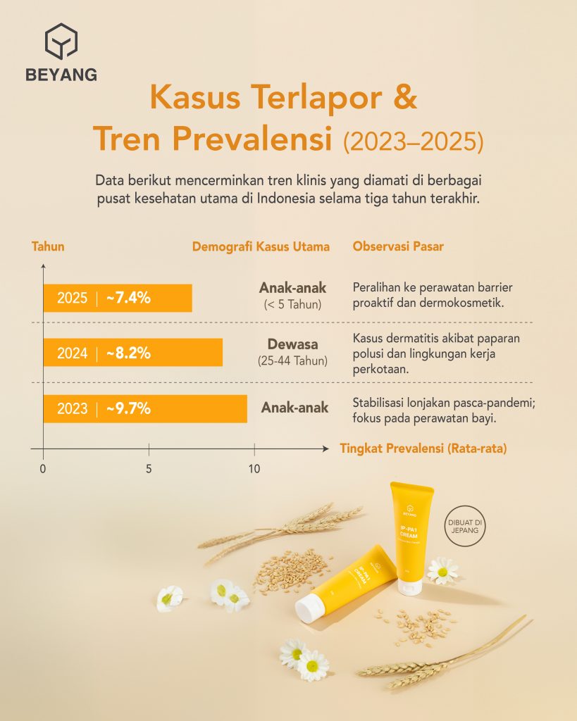 Hingga awal 2026, kasus Dermatitis Atopik (eksim) di Indonesia terus meningkat, terutama di perkotaan yang 23% lebih berisiko dibanding pedesaan. Paparan polusi dan urbanisasi cepat menjadi pemicu utama. Dengan prevalensi anak-anak mencapai 20%, komunitas medis mendesak strategi perawatan ‘barrier-first’ untuk menghentikan ‘Allergic March’.