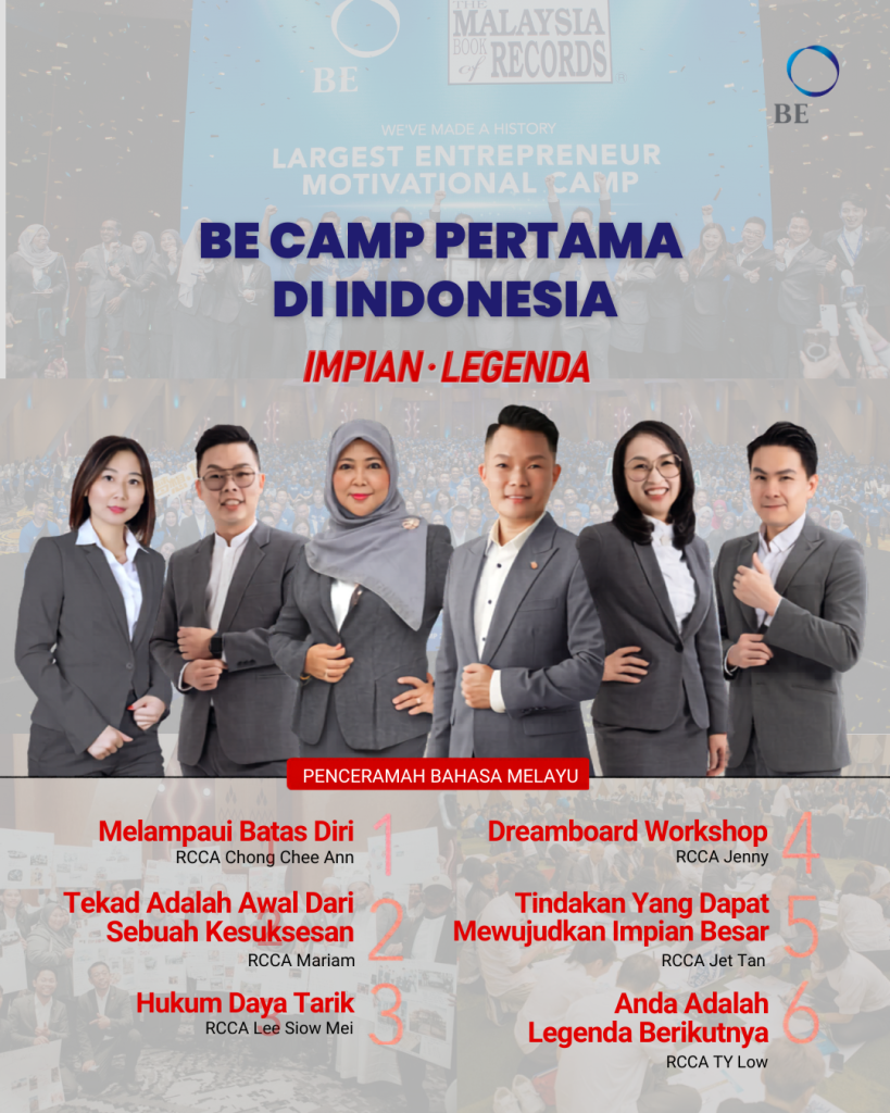 Setelah mencetak sejarah di Malaysia, momentum ini secara resmi telah melintasi batas negara. Menyusul kesuksesan luar biasa BE Camp Malaysia yang masuk dalam Malaysia Book of Records (MBOR) sebagai Kamp Motivasi Entrepreneur Terbesar dengan hampir 3.500 peserta, kini giliran Indonesia menyalakan api transformasi.