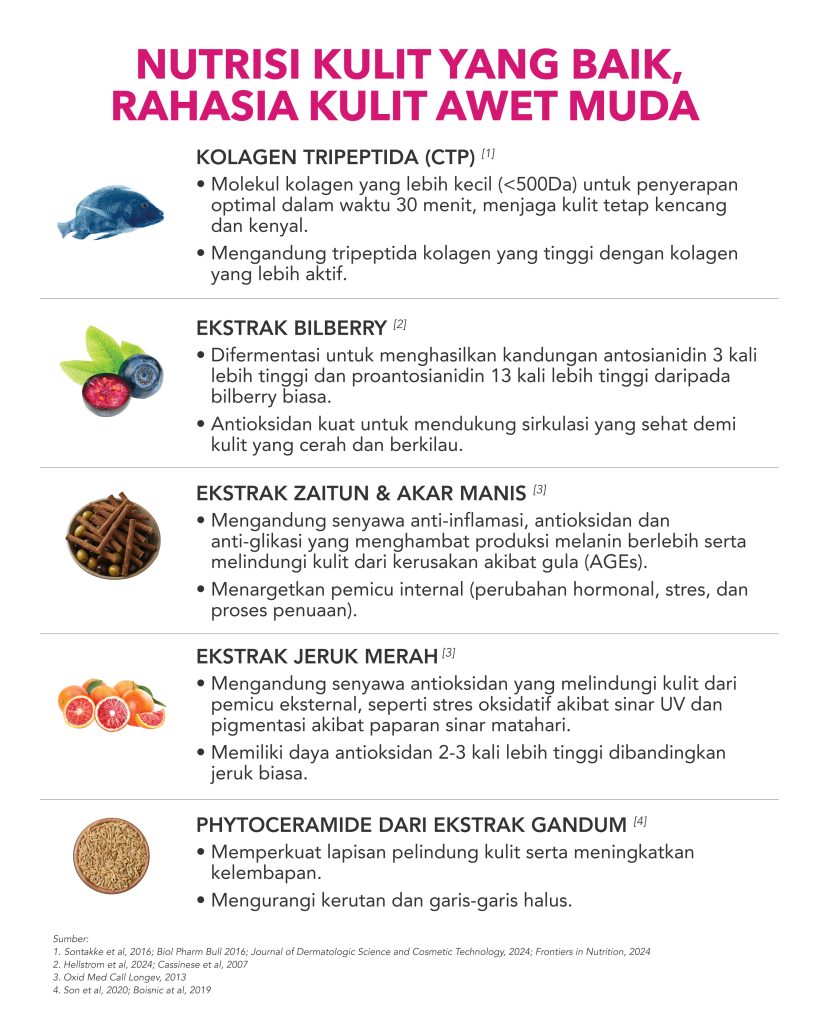 Minuman kolagen terobosan yang diformulasikan dengan Kolagen Tripeptida canggih dan dipatenkan, dipadukan dengan antioksidan bermanfaat (campuran ekstrak botani eksklusif) untuk memberikan manfaat kulit yang lebih optimal. BElixz COLLAGEN dirancang untuk membantu mendukung kulit yang lebih kencang dan kenyal, menampilkan kulit yang cerah dan berkilau, serta membantu menjaga kulit tetap halus dan tampak sempurna. Mudah dinikmati setiap hari, menutrisi kulit dari dalam untuk menampilkan kulit yang tampak sehat dan awet muda.