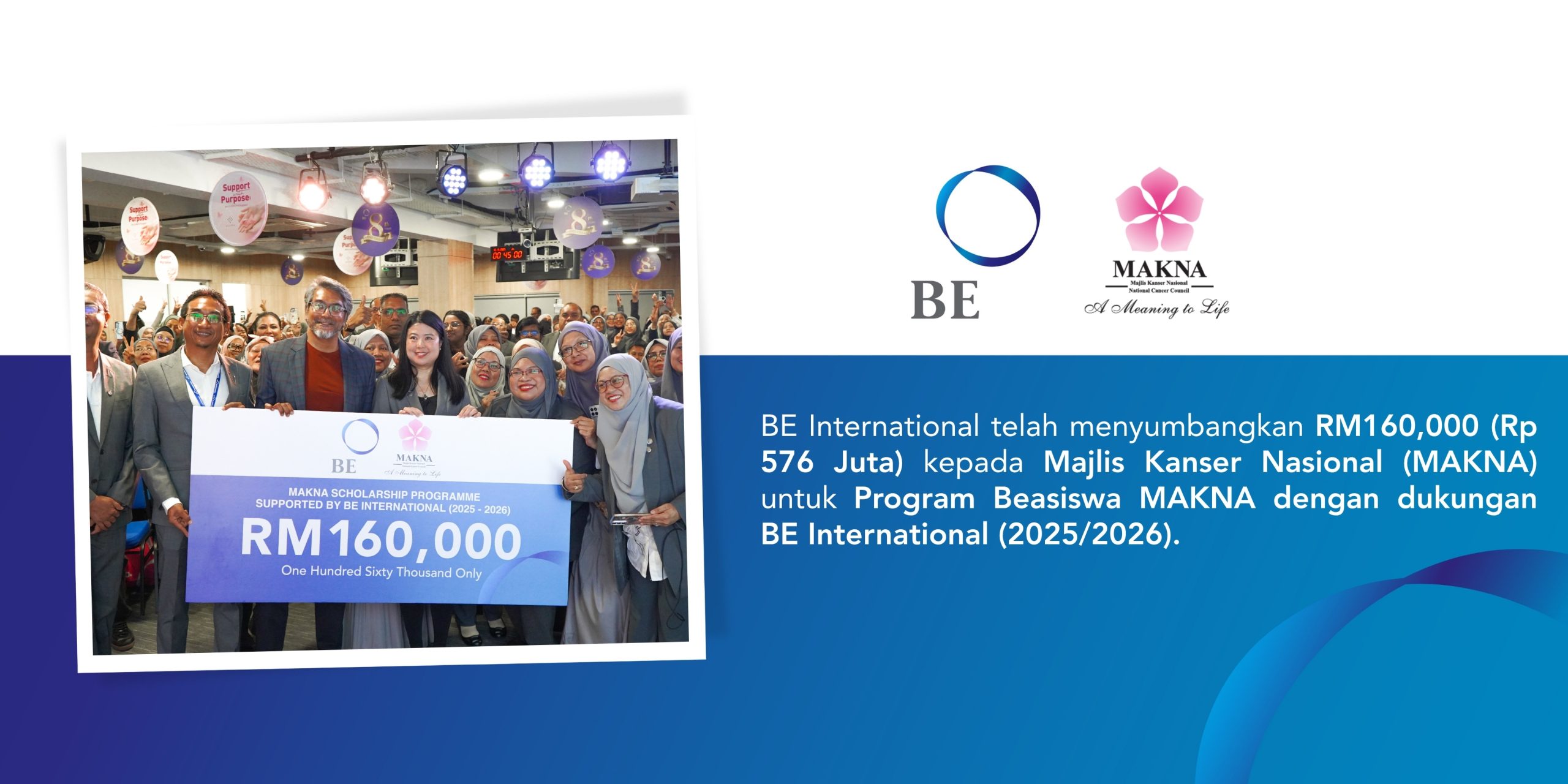 Sebagai bagian dari komitmen kami yang berkelanjutan terhadap dampak sosial, BE International dengan bangga telah menyumbangkan RM200,000 (Rp 720 Juta) kepada Majlis Kanser Nasional (MAKNA), yang akan dialokasikan untuk Program Beasiswa MAKNA (2024/2025) guna meringankan beban finansial pendidikan bagi para penyintas kanker dan anak-anak pasien kanker.
